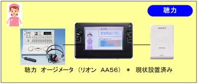 | 聴力については検査値を詳細で転送させる自動データ出力機能と測定係員の判断で OK・NGを判別してデータ出力させる機能が用意されております。 |
